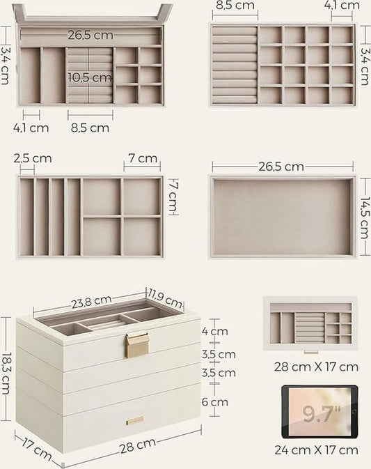 Travel Jewelry Makeup Box with LED Lighted Mirror
